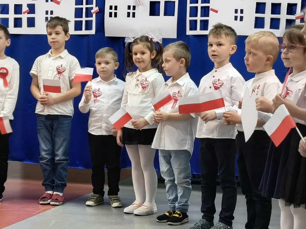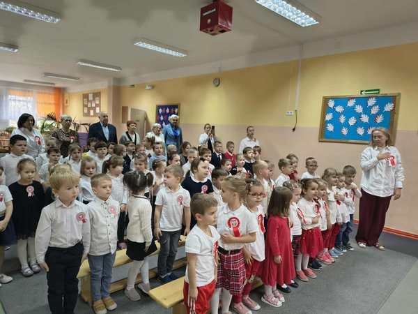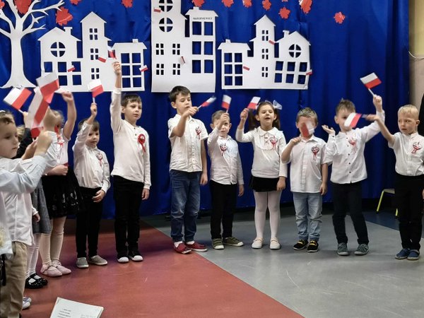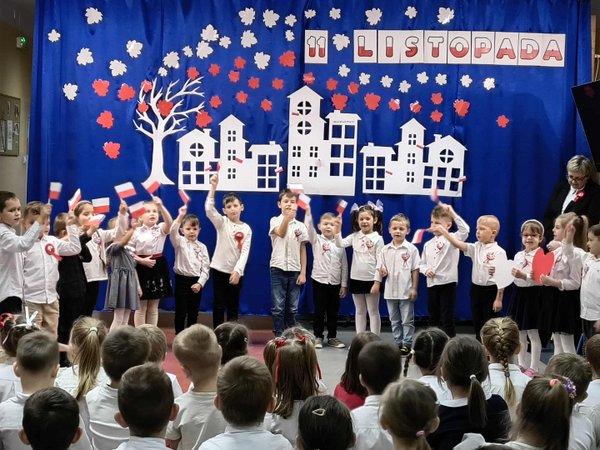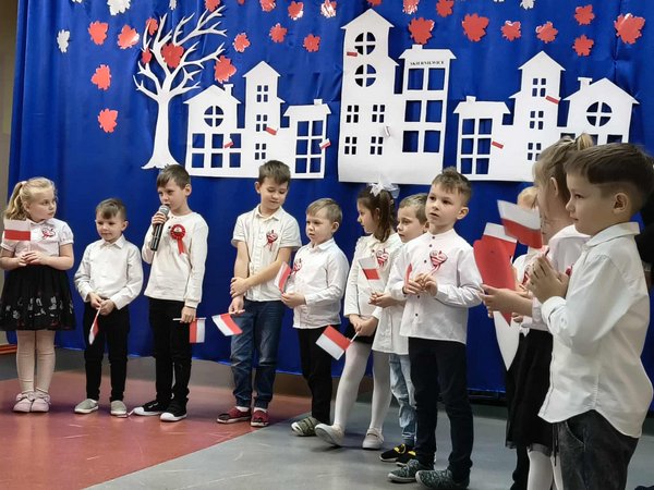 7 listopada dzieci z grupy „Poziomki” zaprosiły przedszkolaków i pracowników przedszkola na uroczystość z okazji Święta Niepodległości. Wszyscy z uwagą obejrzeli program artystyczny przygotowany przez dzieci. Centralnym punktem obchodów było zaśpiewanie „Mazurka Dąbrowskiego” .