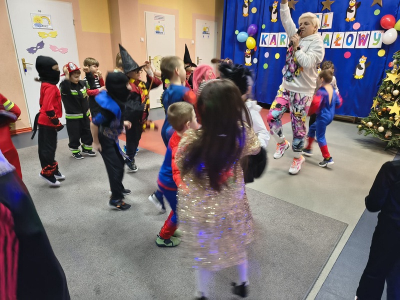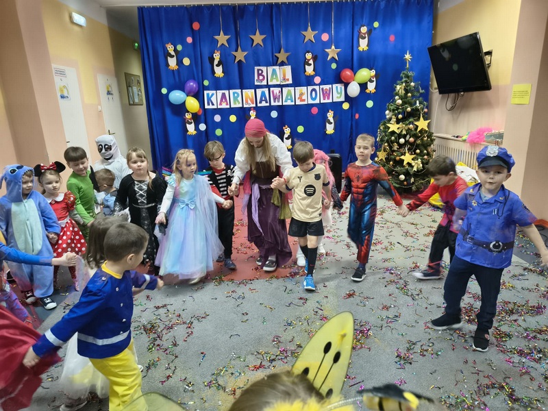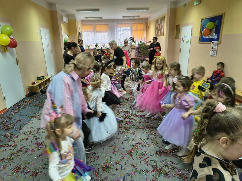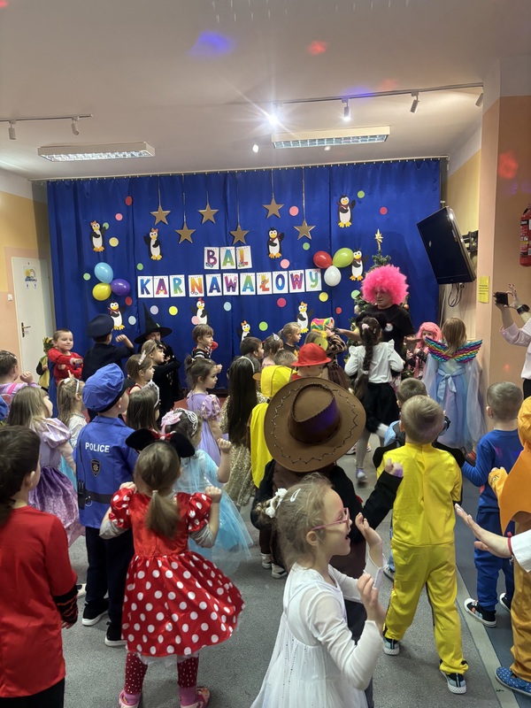 W naszym przedszkolu zrobiło się bajecznie i kolorowo! Odbył się długo wyczekiwany Bal Karnawałowy, który dostarczył dzieciom mnóstwo radości i niezapomnianych wrażeń. Przedszkolne sale wypełniły się księżniczkami, superbohaterami, zwierzątkami oraz postaciami z ulubionych bajek. Podczas balu nie zabrakło wesołej muzyki, wspólnych tańców, zabaw ruchowych, które wywoływały uśmiechy na twarzach wszystkich uczestników.