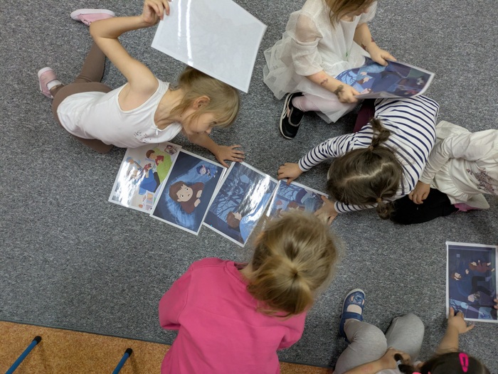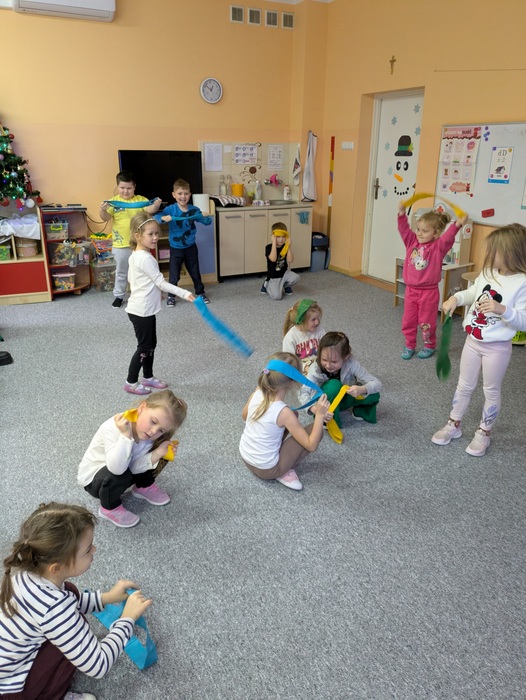 Strach to emocja która pojawia się gdy czujemy zagrożenie lub niepewność. U dziecka w wieku przedszkolnym jest naturalną reakcją na nowe, zupełnie jeszcze nieznane bodźce, które mogą być traktowane jako zagrażające. Najpierw dziecko może się bać nieznanych dźwięków, pająków, ciemności, obcych ludzi – stąd tak trudna bywa rozłąka z rodzicami podczas procesu adaptacji w przedszkolu. Dziecko dopiero uczy się rozpoznawać zagrożenia oraz mechanizmy radzenia sobie z nimi, zdolność logicznego myślenia zaczyna dojrzewać i tym samym pojawiają się trudne do przepracowania emocje. Jeżykom w tym trudnym temacie pomógł Bojek z Wyspy Strachu. Dzieci poznały historie Janka, opowiadały o swoich lękach, o tym czego się boją. Wspólnie znaleźliśmy też sposobu na radzenie sobie ze strachem. Jeżyki wysłuchały też utworu muzycznego do którego określali swoje emocje poprzez taniec z szarfami. Wyspa Strachu stała się mniej straszna.