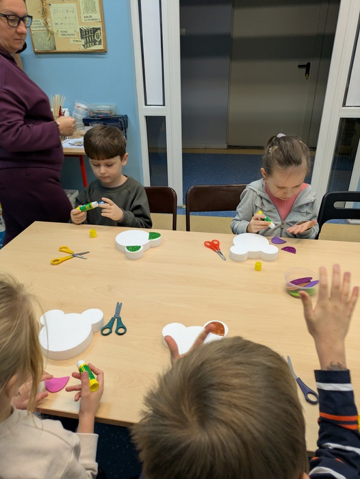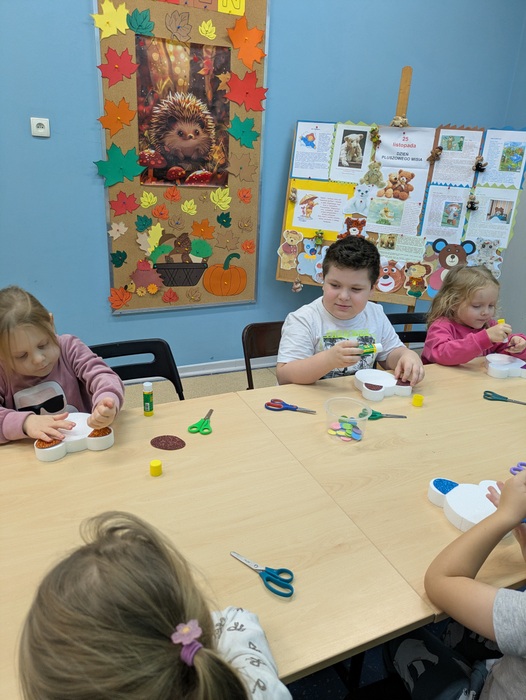 Dzieci z grupy Jeżyki odwiedziły dziś Miejską Bibliotekę Publiczną im. W. Reymonta. Pani bibliotekarka zorganizowała dla naszych dzieci warsztaty z okazji dnia pluszowego misia. Oprócz bajki o głodnym misiu pani przygotowała kilka zagadek dotyczących misiów ze znanych i mniej znanych bajek. Każde z dzieci wykonało także własnego misia. Bardzo dziękujemy za wspaniałe zajęcia!