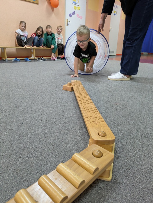 Czas ferii zimowych to czas wyjazdów. Dla tych, którzy zostali jednak na miejscu i uczęszczali do przedszkola również nie zabrakło atrakcji. Pierwszy tydzień upłynął na na zabawach rozwijających sprawność fizyczną. Dzieci miały możliwość sprawdzenia swojej równowagi na ścieżce sensorycznej czy tunelu. Nie zabrakło również rozwoju intelektualnego - rozwijały motorykę małą oraz ćwiczyły uważność. Zabawy było co nie miara.