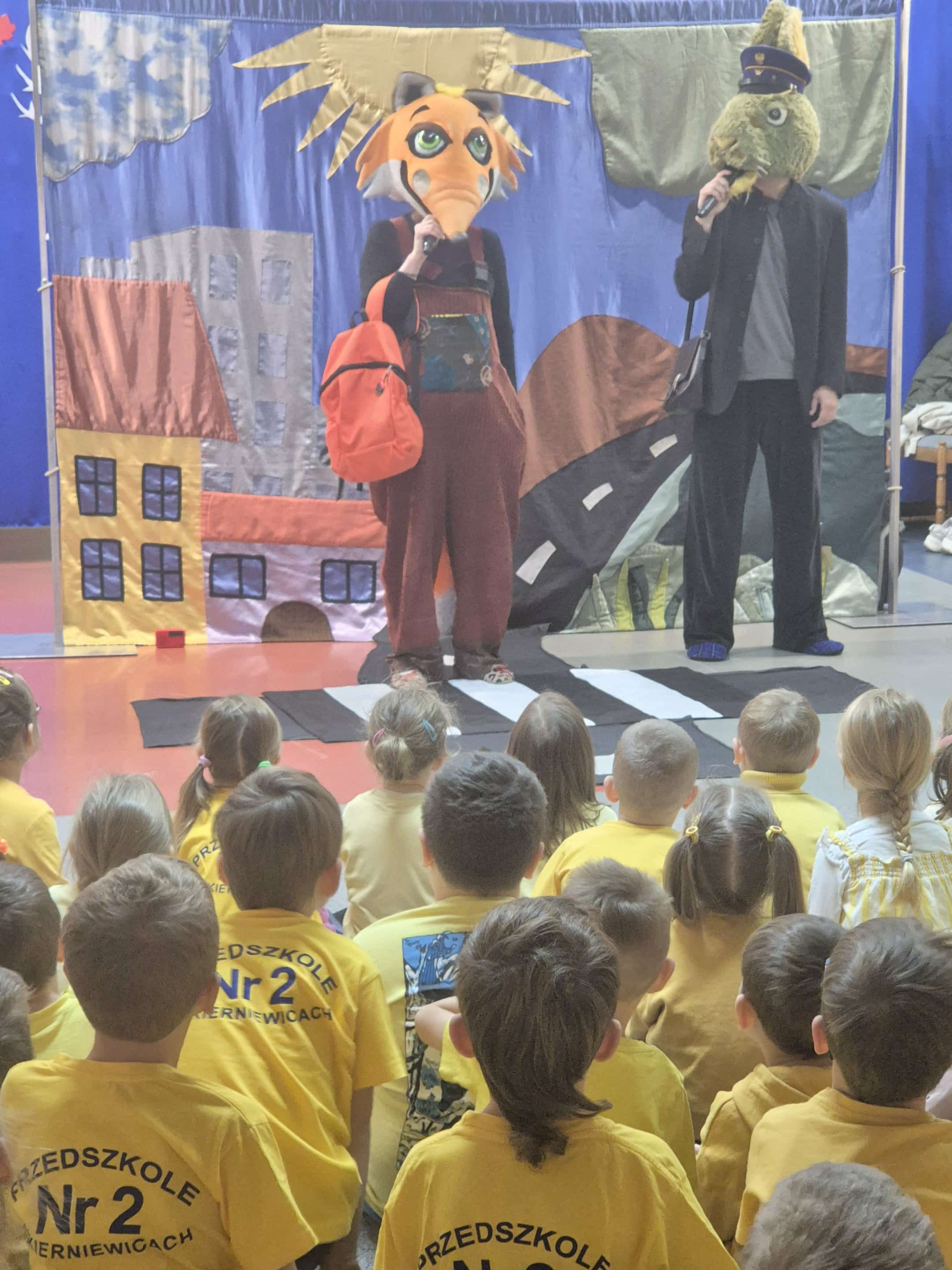 W naszym przedszkolu gościł teatrzyk Amuzado z Krakowa. Aktorzy zaprezentowali przedstawienie pt. „Lisek w wielkim mieście”. Dzieci z ogromnym zainteresowaniem śledziły losy sprytnego bohatera, który uczył się, jak bezpiecznie poruszać się w mieście. Spektakl w ciekawy i zabawny sposób przypomniał najmłodszym zasady bezpieczeństwa- m. in. jak zachować się na ulicy oraz jakie są numery alarmowe. Było dużo śmiechu, emocji i wartościowych lekcji.