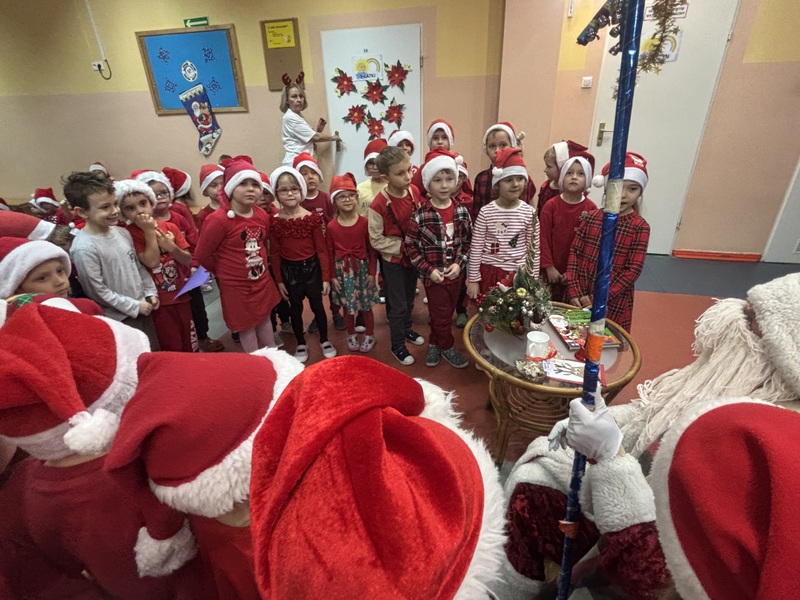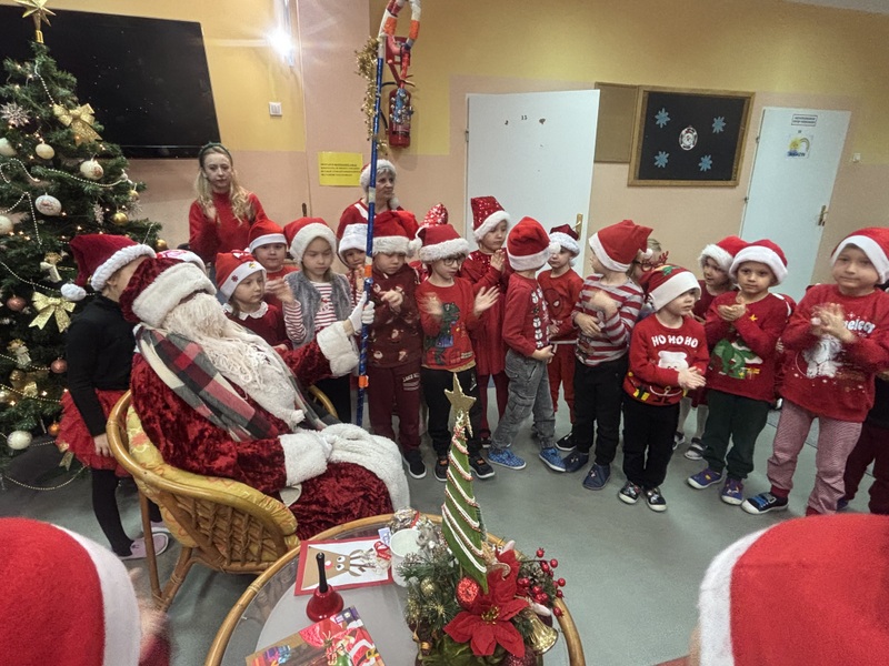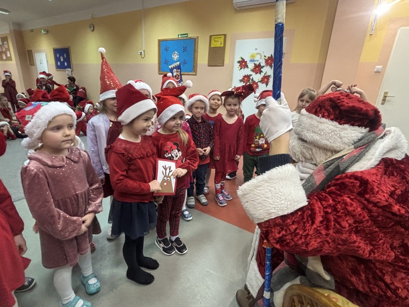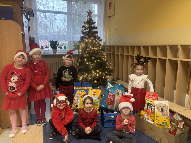 5 grudnia przedszkolaki odwiedził Święty Mikołaj, który obdarował dzieci uśmiechem i drobnymi upominkami. Tego dnia odbyła się także wizyta przedstawicieli schroniska dla bezdomnych zwierząt w Skierniewicach. Dzieci przekazały karmę zebraną w ramach akcji "I Ty możesz zostać Świętym Mikołajem", pokazując, że potrafią dzielić się dobrem nie tylko między sobą, lecz także z potrzebującymi zwierzętami. Atmosfera radości, życzliwości i wzajemnej pomocy sprawiła, że tegoroczne Mikołajki były naprawdę wyjątkowe.