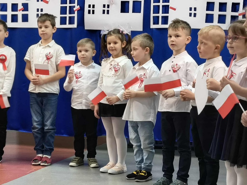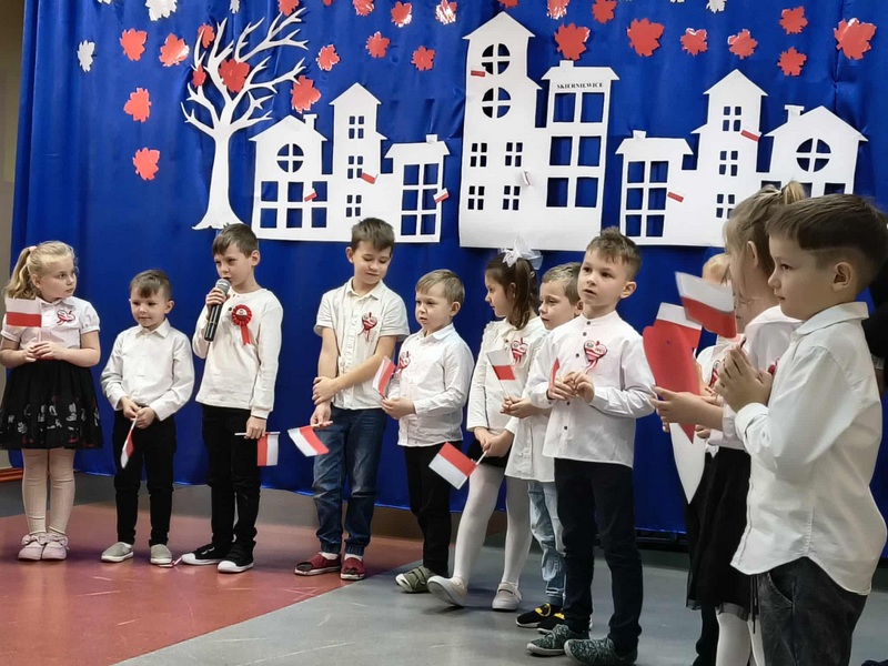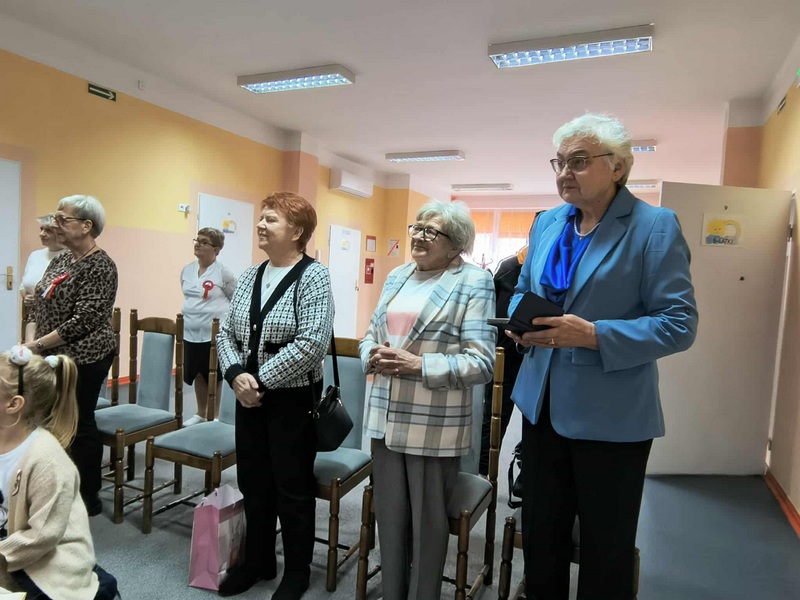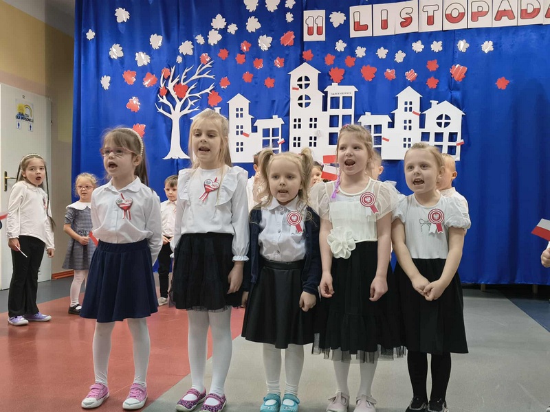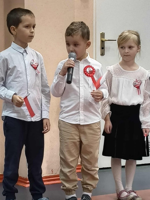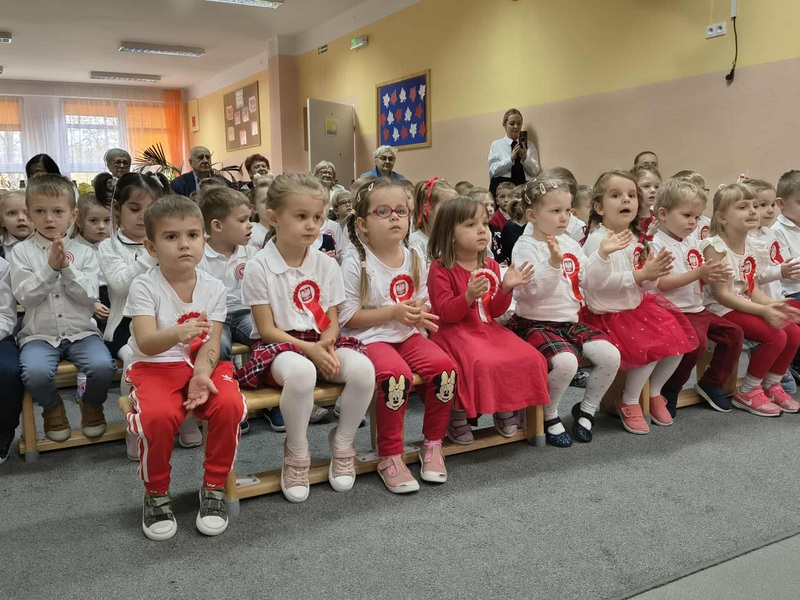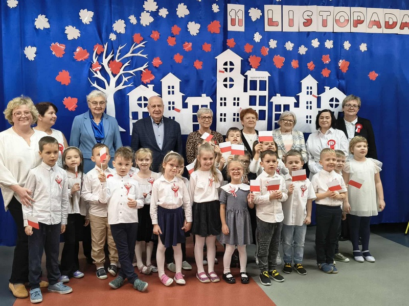 W piątek, 7 listopada w naszym przedszkolu odbyły się uroczyste obchody Dnia Niepodległości. Dzieci z grupy "Poziomki" z dumą zaprezentowały program artystyczny, w którym znalazły się wiersze i piosenki o tematyce patriotycznej. Wśród zaproszonych gości byli członkowie Klubu Seniora "Zgoda" a także emerytowani nauczyciele placówki, którzy z radością uczestniczyli w uroczystości. Wspólnie odśpiewano hymn państwowy - "Mazurek Dąbrowskiego". To spotkanie pokoleń stało się piękną lekcją patriotyzmu, wzajemnego szacunku i wdzięczności za wolność.