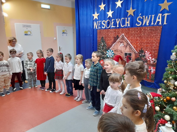Święta Bożego Narodzenia to szczególny czas. Świąteczne dekoracje, przystrojona choinka, kolędy i przygotowania- tworzą niepowtarzalny klimat. Świąteczny nastrój udzielił się również dzieciom i rodzicom podczas spotkania w przedszkolu. Była to doskonała okazja do zaprezentowania umiejętności dzieci podczas krótkiego programu artystycznego oraz wspólnego kolędowania. Takie spotkania to nie tylko możliwość celebrowania tradycji, ale również pogłębiania wzajemnych relacji i więzi.